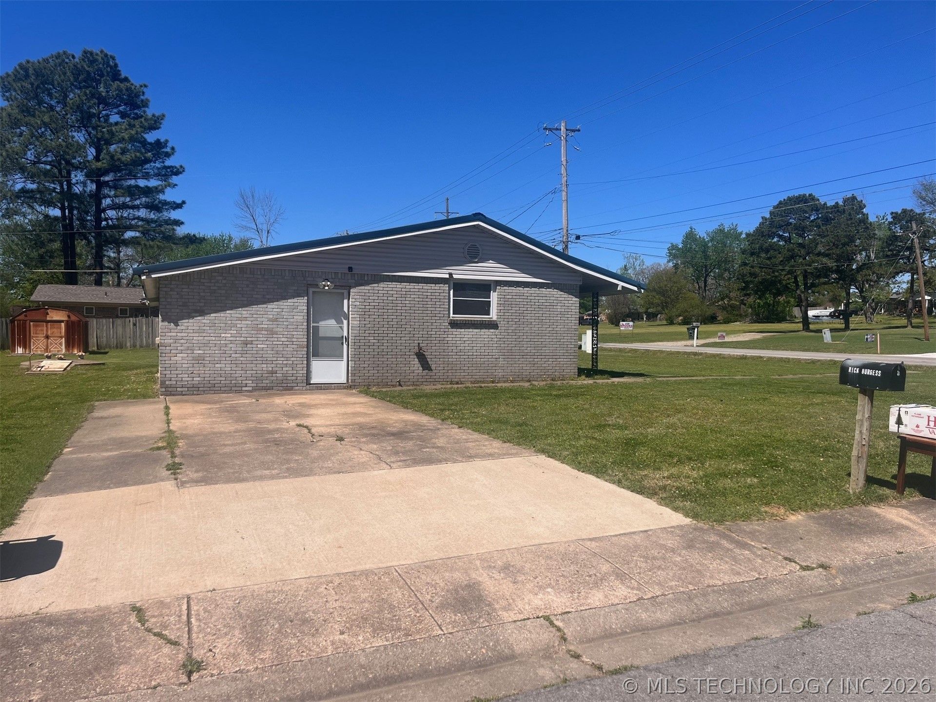 INVESTOR ALERT. Prime Fixer-Upper Opportunity in Sallisaw! This is a true fixer upper on a desirable corner lot in Sallisaw. Bring your vision and build equity with this one-of-a-kind home, 3-bedrooms, 1-bathroom, and a fourth flex room with utility hookups. This would make a great dedicated laundry space or reimagined to suit your design. This property is a blank canvas awaiting a seasoned flipper or DIY enthusiast. Featuring an open-concept living space, a covered front porch, metal roof, and practical amenities like a backyard shed and storm cellar. This home is being sold strictly AS-IS, with no repairs, and will convey with existing contents, excluding the piano. Buyers should anticipate significant renovation and removal of existing contents. Don't miss this opportunity to unlock the potential of adding value in Sallisaw's growing market!