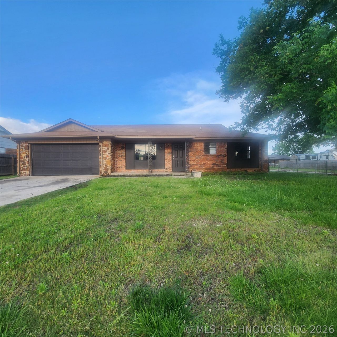 Spacious home in Kiefer with 3-bedrooms and 2-bathrooms and a 2-car garage. This home has a roomy living room that is open to the dining room/kitchen. You will have an inside laundry room and a small bonus room off the back. You could make it a nice hobby room or for extra storage. Easy to maintain flooring throughout with no carpet. The back patio features a nice, covered patio that overlooks a large, fully fenced yard. This home comes furnished with a stove, microwave and refrigerator.