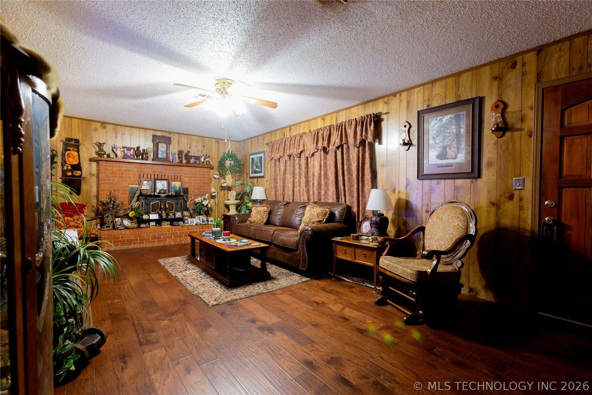 Charming, well-maintained home with character and thoughtful updates throughout. This property features beautiful wooden floors, fresh interior paint in non-paneled areas, and an attic fan for added efficiency and comfort. The roof is approximately 2 years old, and the home has been treated with a termite preventative within the last two years for added peace of mind. The flexible floor plan offers the potential for a fourth bedroom or a second living area, depending on your needs. Situated on over 4 acres with a seasonal creek, the property offers a serene, natural setting. The immediate backyard area is enclosed with a chain-link fence, while the remainder of the property is barbed wire fenced (excluding the front), providing both functionality and flexibility for a variety of uses. Additional exterior features include leaf guard back gutters, two storage sheds, and a gazebo perfect for outdoor enjoyment and entertaining. Proudly family-owned for multiple generations, this home reflects true pride of ownership and care over the years.