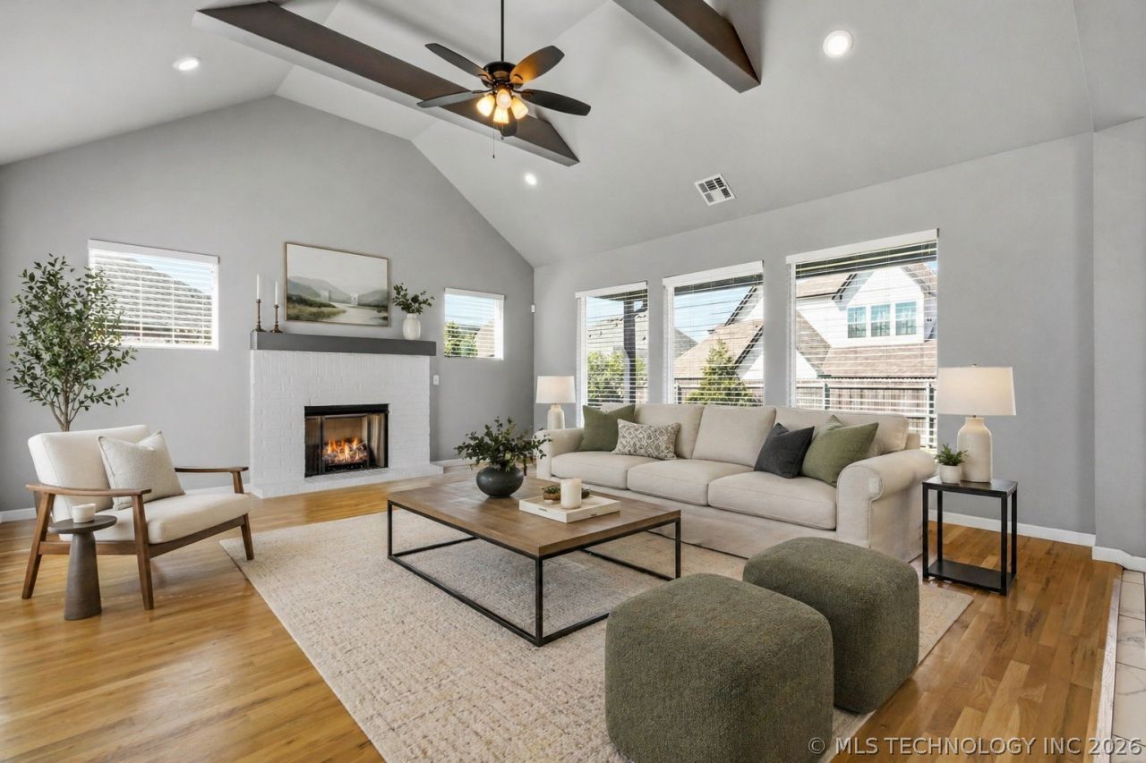 Welcome to the one Yorktown has been waiting for. This Silvercrest 2021 build checks every box; 5 bedrooms, 3 full baths, 2,944 SF, cul-de-sac lot, and Bixby schools. The layout is the real story: main floor master with soaking tub, separate shower, and large walk-in closet; eat-in kitchen with island, gas range, and pantry flowing right into a fireplace living room; game room and three additional bedrooms upstairs; and a fifth bedroom with a hall bath steps away on the first floor; perfect for guests, teens, or a dedicated home office. Outside: covered patio, covered porch, full privacy fence, professional landscaping, and a sprinkler system. Three-car garage, vaulted ceilings, dual HVAC zones, floored attic, and a security system round it out. HOA includes pool, parks, trails, and pet amenities at just $179/quarter. Vacant, move-in ready, and priced to move. In a neighborhood full of great options this is the one. Schedule your private showing today!
